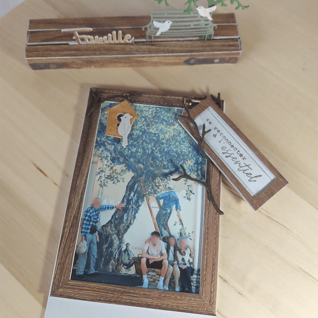 Il est prévu de pouvoir changer la photo et au dos du cadre une carte permet de transmettre des mots doux.